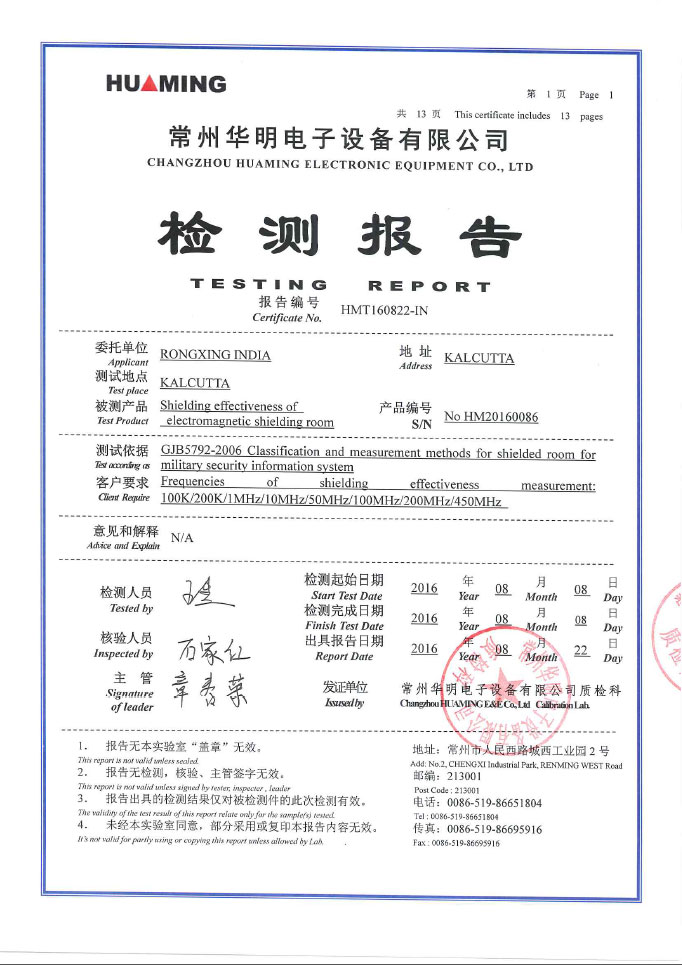 2016.9.22中國電子科技集團公司第二十七研究所-屏蔽室